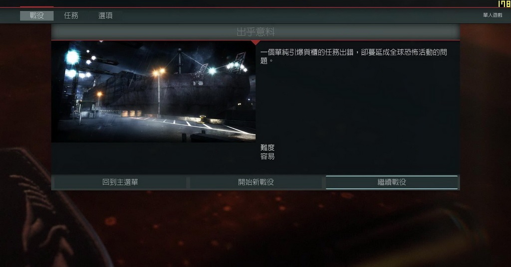 战役模式中玩家扮演的是Tier1特种部队的一名士兵,经过八个章节的战役,完成对应场景中的主线任务即可过关。过关之后无法返回之前的场景。