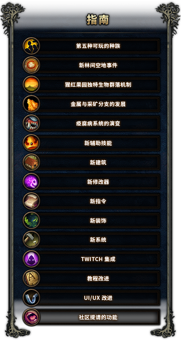 海狸、蜥蜴、人类和鸟身女怪并肩,为生存而斗争。上至奢侈品和娱乐品味,下至住房和烹饪偏好,利用每个群体的优势,平衡不同的需求。制造雨衣、酿造麦芽酒、烘烤馅饼,在与森林中的敌人对峙时鼓舞士气。