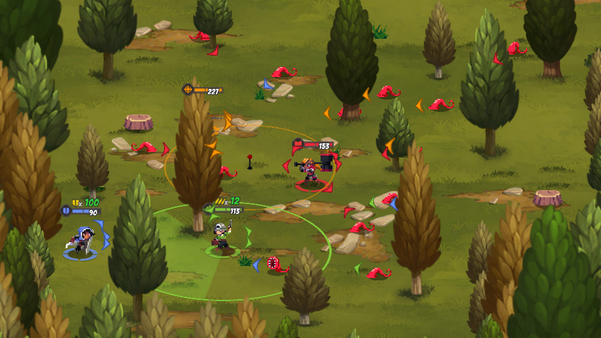 必须真正合作才能击败敌人。 敌人附有彩色屏障进入战场,只有颜色相似的盟军才能粉碎这些屏障。你必须复活那些倒下的队友。 屏障不会自行破裂! 虽然复活状态条会随着时间自动增长,但助人一臂之力当然更好。这是合作,而非竞争。 再也不用为了等补刀、抢黄金、分血瓶而争斗。 所有东西都是共享的,所以你可以集中精力进行合作。