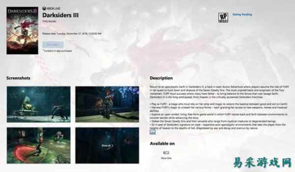 日前,微软Xbox商店赫然出现了《暗黑血统3》的游戏页面,并注明发售日期为2018年11月27日。此前关于游戏的正式发售日有着不少坊间传闻,这次的实锤看来是钦定了?除此之外,外媒TrueAchievements曾报道《暗黑血