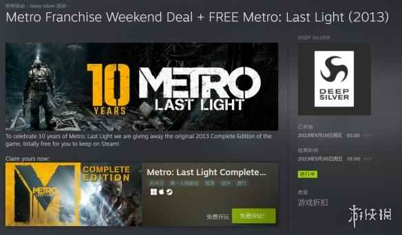 “地铁三部曲”是4A Games开发的后末日单人FPS游戏系列,其中第二部作品《地铁:最后的曙光》发售于2013年。为了庆祝发售10周年,官方宣布将于5月18日~25日期间开启“Steam喜加一”