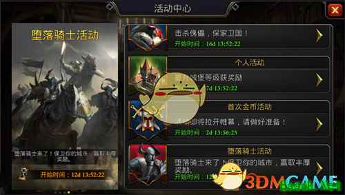 阿瓦隆之王活动中心,是玩家快速获取金币,资源的有效途径。一共分为3大活动:提高主城等级、金币活动、堕落骑士活动,每一个活动难易程度各自不同,简单如个人金币活动,困难的有堕落骑士。下面小编会提供一篇阿