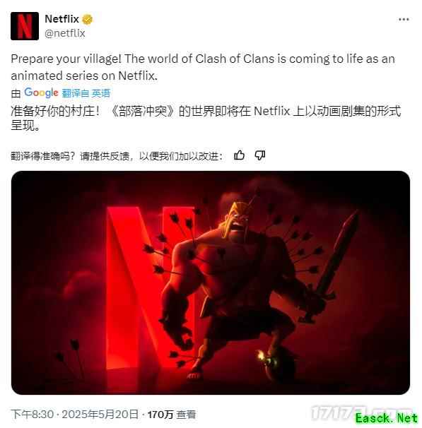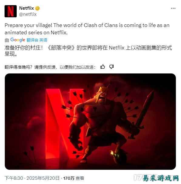 5月21日消息,全球知名流媒体平台Netflix宣布,Supercell旗下经典策略手游《部落冲突》(Clash of Clans)将被改编成动画剧集,并将在Netflix独家播出。据悉,动画剧情将以野蛮人集结部队保卫村庄为主线展开,同时还