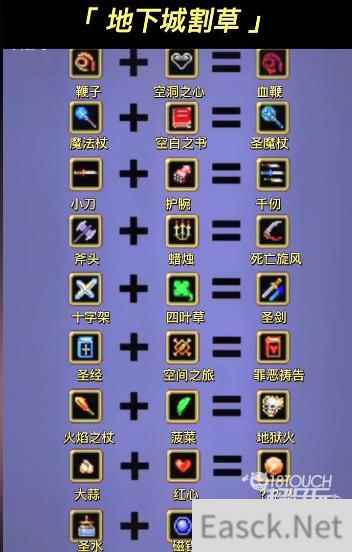 地下城割草神器怎么合成?都有哪些神器呢?神器的合成是无数玩家好奇的,想知道具体的情报,好奇都有哪些种类,以下我们带来了地下城割草神器的合成攻略,一起来详细的看看吧。武器道具神器鞭子虚空之心血鞭魔法杖