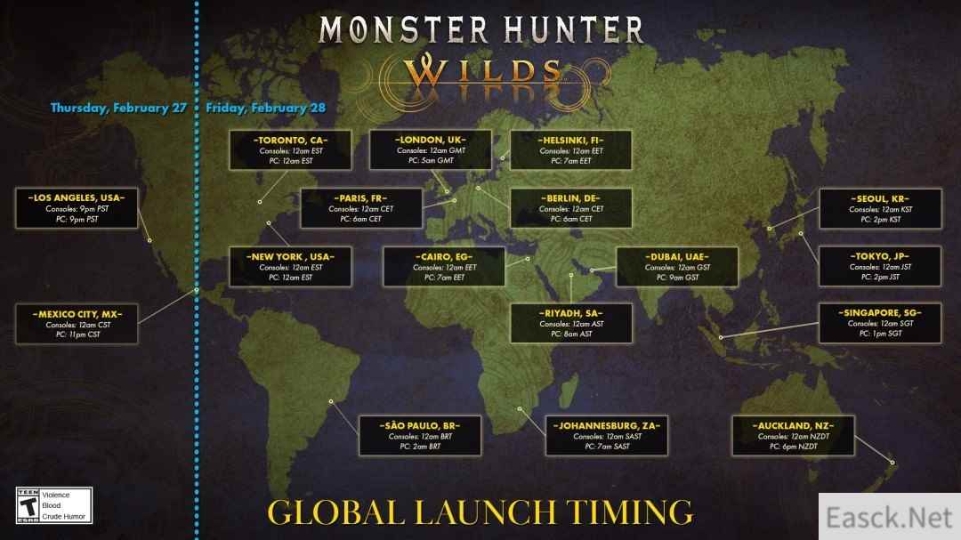 怪物猎人:世界将在本月底正式发售,日前有海外玩家整理了一份全球发售时间表,详细列出了主机版与PC版在不同地区的解锁时间。在亚洲地区,具体解锁时间为:主机版:2月28日上午11点(北京时间) PC版:2月28日下午1点(