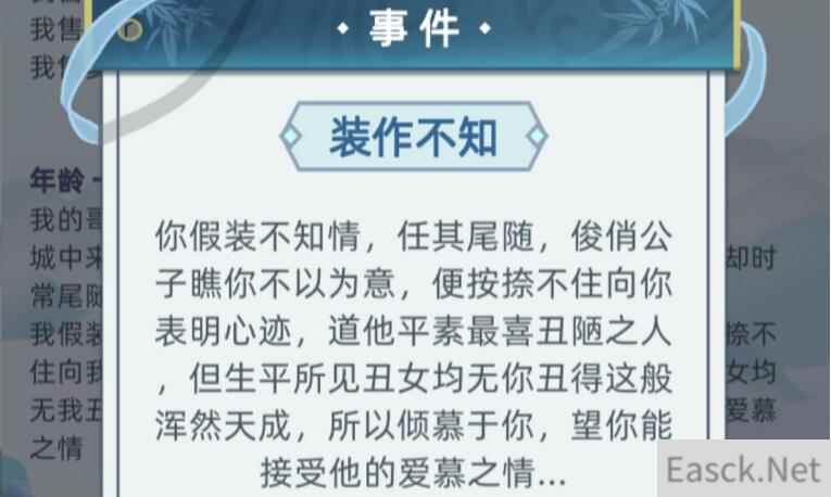 古代人生装作不知事件全选项后果一览有哪些?装作不知事件接受会怎么样?在游戏里面这个也是一个玩家遇到的特殊事件,不过这个事件就只有玩女性路线的时候才可以触发,所以想要触发这个事件的玩家也是需要额外