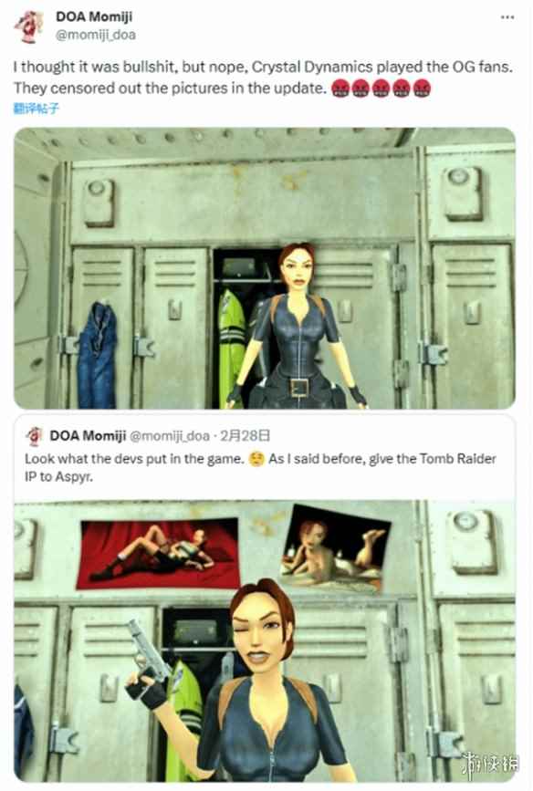 在《古墓丽影1-3复刻版(Tomb Raider I-III Remastered)》最近的一次更新中,有玩家发现官方删除了《古墓丽影3》原版第四关中房间中的劳拉海报,且没有在更新说明中提到此次删减。 对此,有玩家认为这些