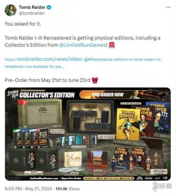 Limited Run Games将会推出《古墓丽影1-3复刻版》的实体游戏版本,此次实体版游戏将会有三个版本:基础版、豪华版和Limited Run Games收藏版。上述实体版游戏将于9月24日发售。 基础版实体游戏将会
