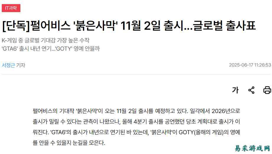 韩媒爆料《红色沙漠》将于2025年11月2日正式发售的消息可能会对玩家产生以下影响:1. 期待增加:这一消息可能会增加玩家对游戏的期待。如果游戏在预告中表现良好,玩家可能会更期待游戏的正式发售,从而增加游