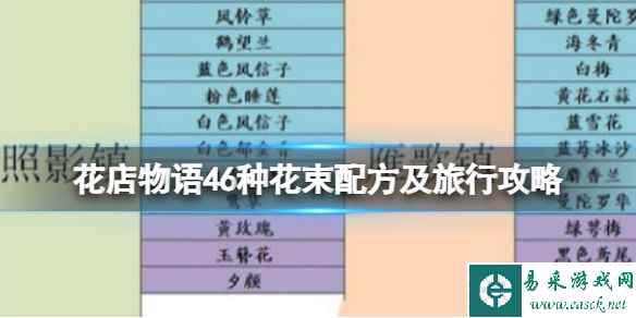 花店物语46种花束配方及旅行攻略?在游戏中有非常多的成就要去达成,但是很多小伙伴们对这个并不了解,那么花店物语46种花束配方及旅行攻略?不知道的就和小编一起来看看吧。花店物语46种花束配方及旅行攻略【