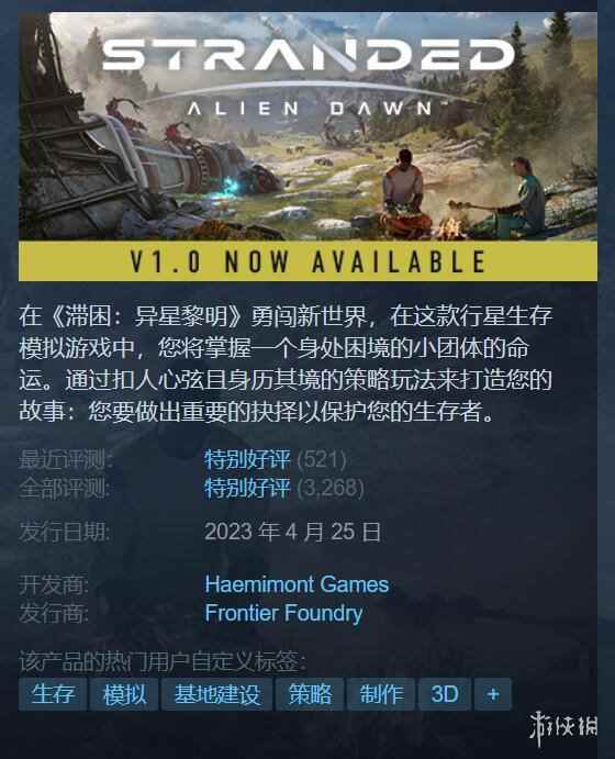 "3D环世界"《滞困:异星黎明》1.0版Steam 87%好评!