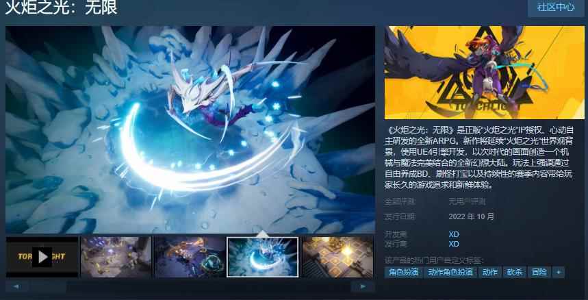 今日(9月3日),ARPG《火炬之光:无限》Steam页面现已上线,页面显示,该作将于今年10月上线,但目前该作锁国区且尚未上线蒸汽平台,感兴趣的玩家可以点击此处进入商店页面。游戏介绍:《火炬之光:无限》是正版“火炬之