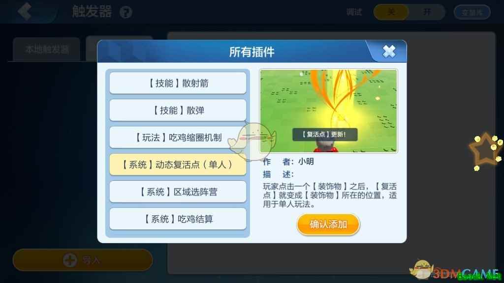 在乐高无限手游中动态复活点系统怎么样呢?不知道的小伙伴就看看小编整理的乐高无限动态复活点系统介绍,感兴趣的小伙伴就一起来看看吧。【系统】动态复活点(单人)我们现在来看到第四个插件——【系统】动