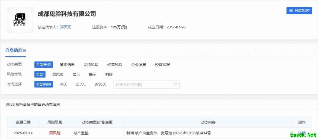 成都鬼脸科技破产重整,曾推灵魂潮汐等三款产品
