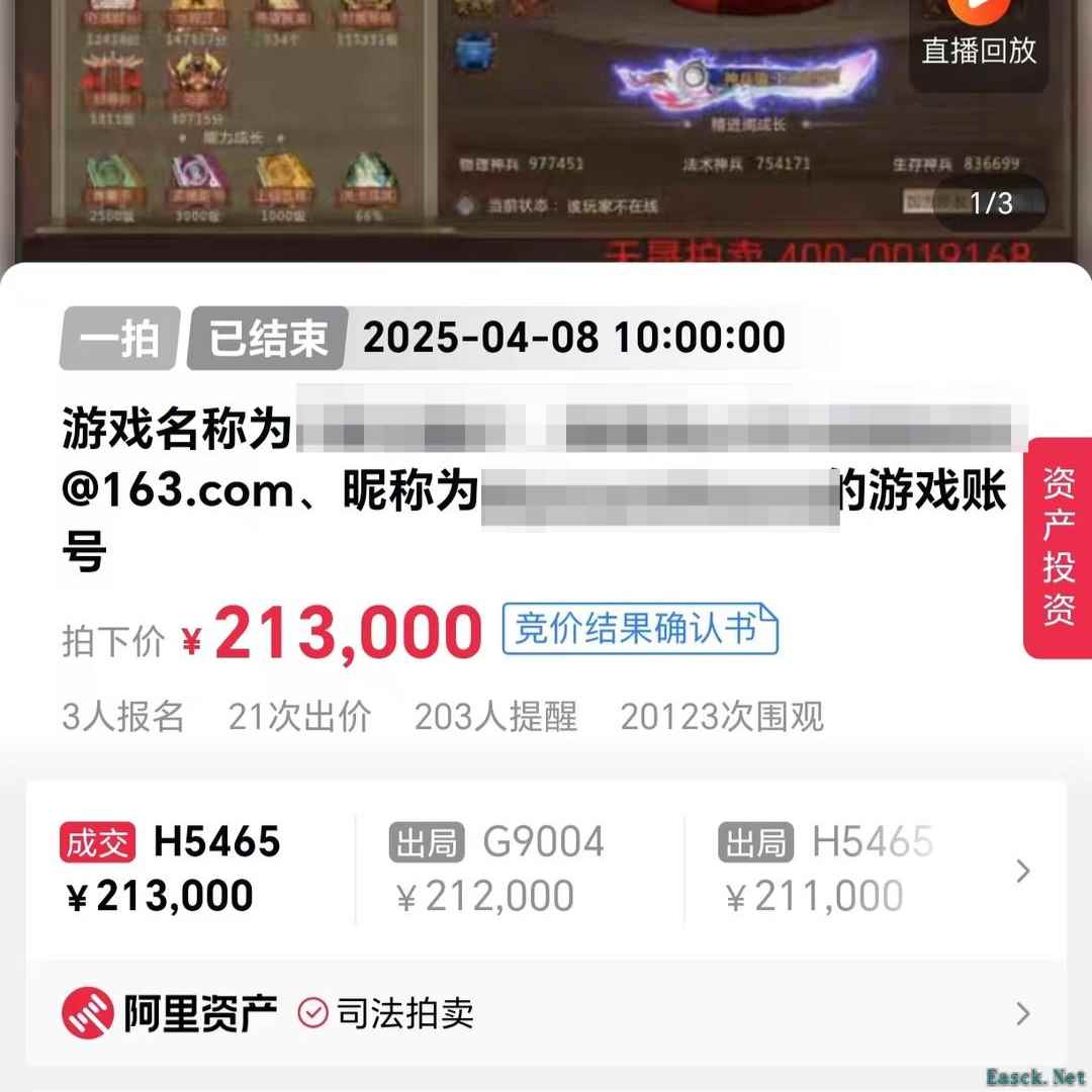 法院拍卖游戏账号,“至尊11”级别梦三国2账号拍出21.3万元高价