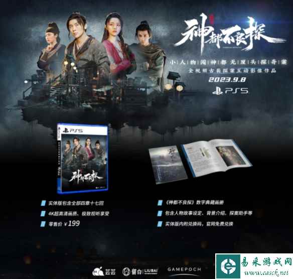 国内游戏发行商星游纪今日宣布,芸芸科技与留白影视合作开发的古装探案互动游戏《神都不良探(underdog detective)》的PS5国行实体版光盘将于2023年9月8日上市,售价199元,全程支持4K超高清画质,包含全部四