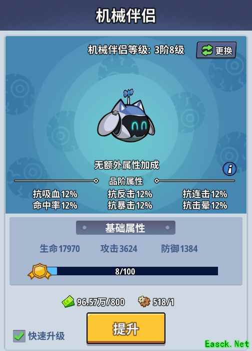 生存大作战中,机械伴侣是提升战斗防御与反击能力的关键。通过培养获取,提升属性、解锁词条,打造专属阵容,助你在战场无往不利。机械伴侣可提升战斗中的防御与反击能力,通过关键词属性加成。 词条属性:抗吸血,