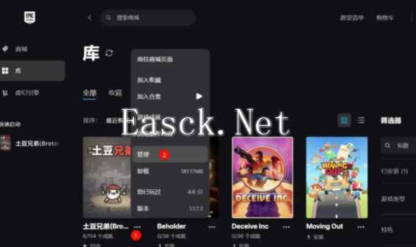 土豆兄弟epic版mod怎么装呢?很多玩家还不太清楚如何操作,下面给大家带来的是土豆兄弟epic版mod安装教程,一起来看一看吧。 土豆兄弟epic版mod安装教程 打开Epic应用程序,如下图点击来到游戏文件