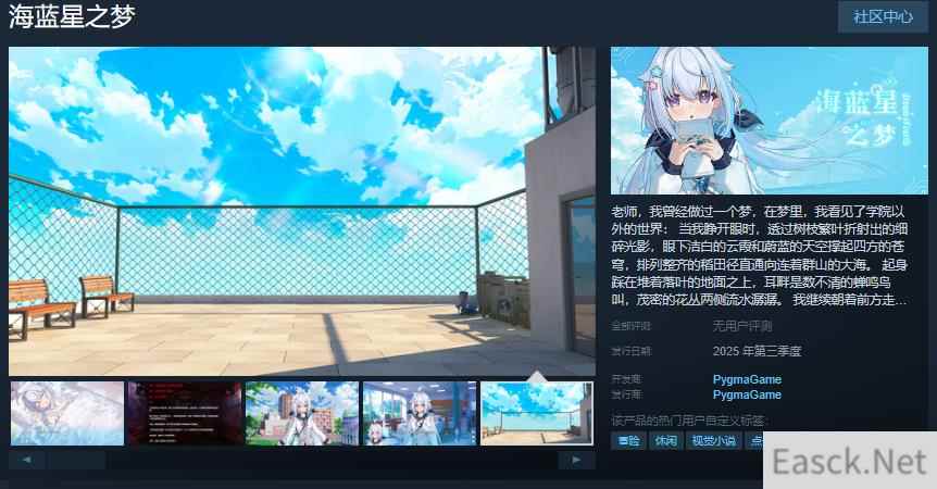 今天(2月26日),国产文字冒险游戏海蓝星之梦已经在Steam平台上线了页面,预计将在2025年第三季度正式发售。这款游戏支持简体中文,感兴趣的玩家可以前往商店页面了解更多详情。游戏简介:“老师,我曾经做过一个梦