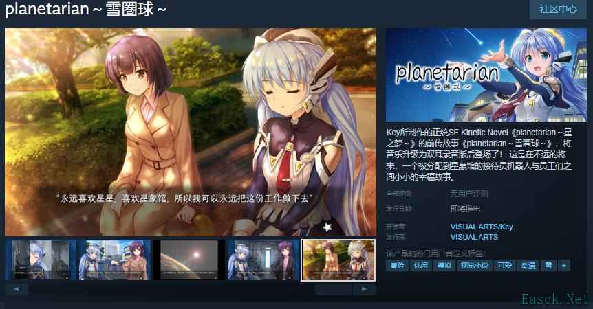 今天(4月2日),key社作品星之梦~雪圈球的Steam页面正式上线,目前发售日期尚未公布。这款游戏支持简体中文和繁体中文,感兴趣的玩家可以前往商店页面了解更多信息。planetarian~雪圈球~是planetarian~星之梦~的前传