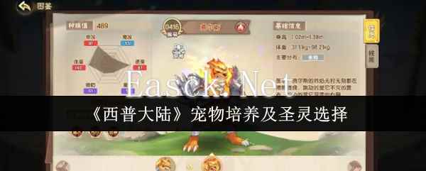 《西普大陆》宠物培养及圣灵选择