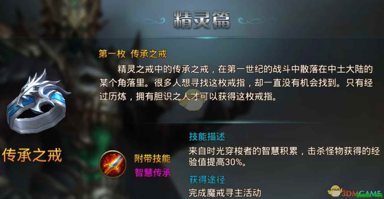 精灵之戒是永恒纪元戒中的魔戒种类之一,来自于神秘的精灵王国,今天小编就给大家介绍精灵之戒第一枚传承之戒的技能介绍。 魔戒背景故事: 第一枚传承之戒精灵之戒中的传承之戒,在第一世纪的战斗中散落在中